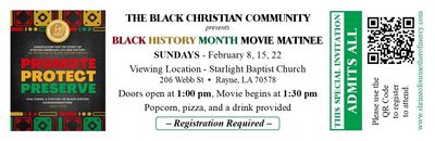 Join us for a meaningful celebration of Black History Month through film, community, and conversation. This year’s national theme, "Promote, Protect, Preserve," reminds us of our sacred duty to honor, uplift, and protect our legacy.